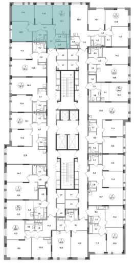 - в каждой секции корпуса - 4 лифта: 2 пассажирских, 2 грузовых