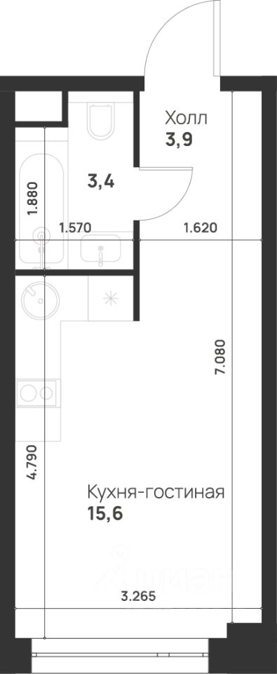 Студия, 22,9 м²