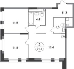 Общая площадь квартиры - 61,3 кв. м, этаж 8 из 20.