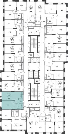 Общая площадь квартиры - 42,7 кв. м, этаж 10 из 20.
