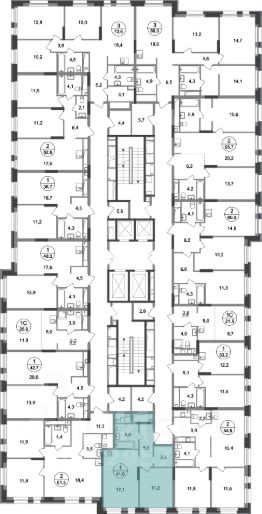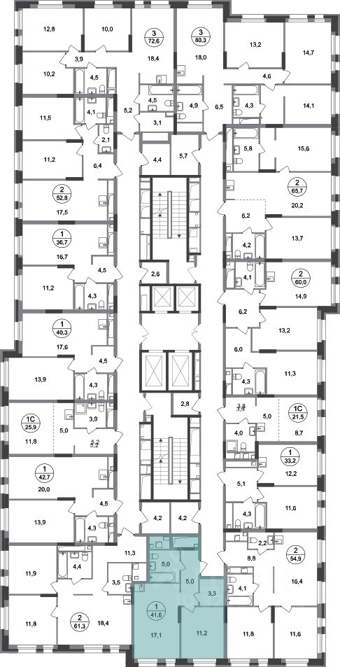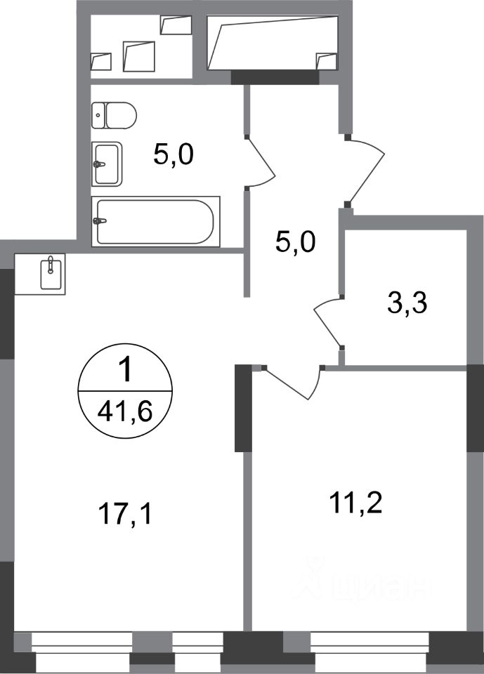 Общая площадь квартиры - 41,6 кв. м, этаж 10 из 20.