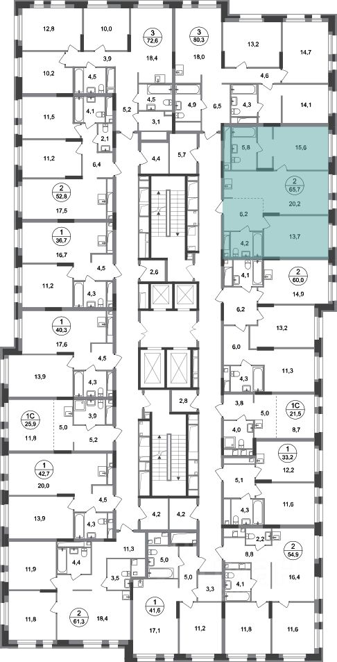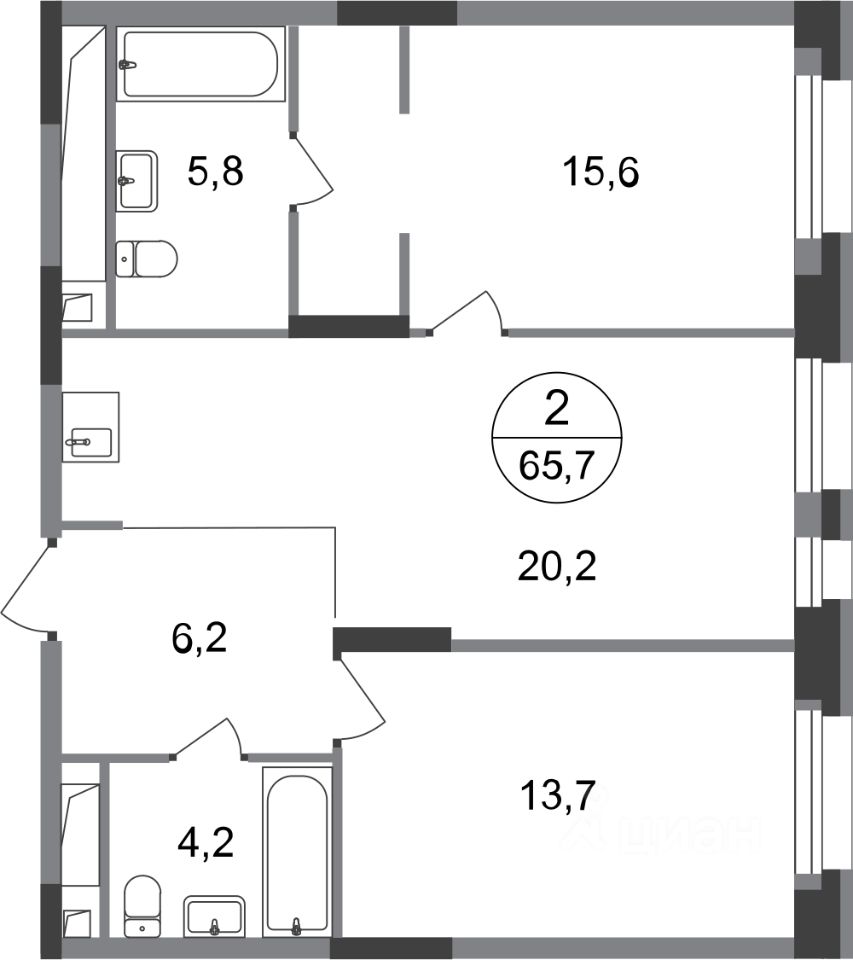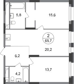 Общая площадь квартиры - 65,7 кв. м, этаж 11 из 20.