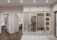 Входные группы выполнены по авторскому дизайну, оснащены системой "тёплый пол". В каждой входной группе будет располагаться комфортабельная зона ожидания с мягким диваном,