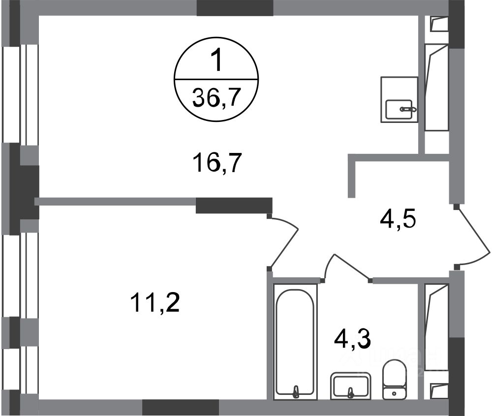 Общая площадь квартиры - 36,7 кв. м, этаж 10 из 20.