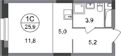 Общая площадь квартиры - 25,9 кв. м, этаж 12 из 20.