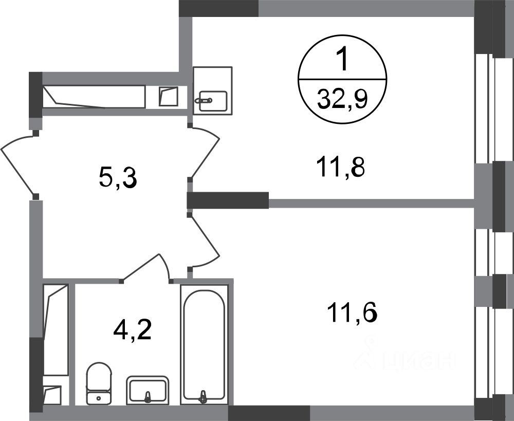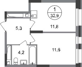 Общая площадь квартиры - 32,9 кв. м, этаж 12 из 20.