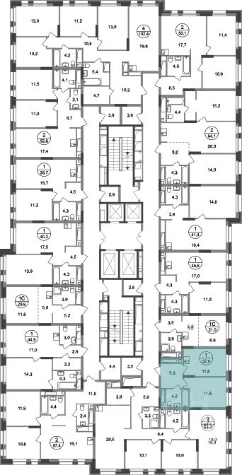 - по 4 лифта: 2 пассажирских, 2 грузовых