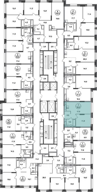 - по 4 лифта: 2 пассажирских, 2 грузовых