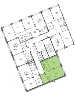 Общая площадь квартиры - 42,2 кв. м, этаж 2 из 17.
