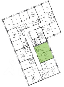 Корпус состоит из 12 секций c переменной этажностью 8-17 этажей.