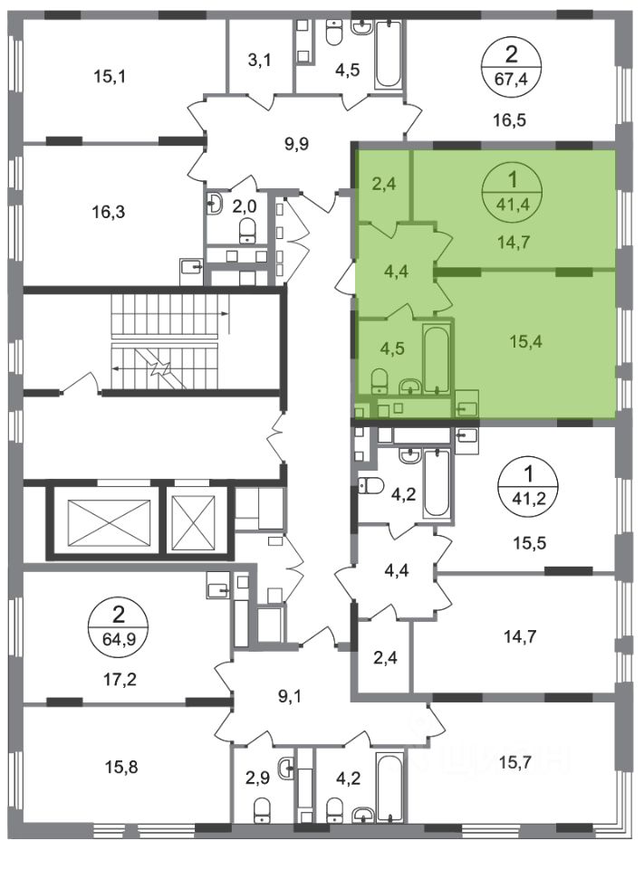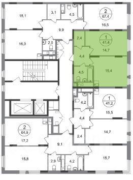 Общая площадь квартиры - 41,4 кв. м, этаж 12 из 17.