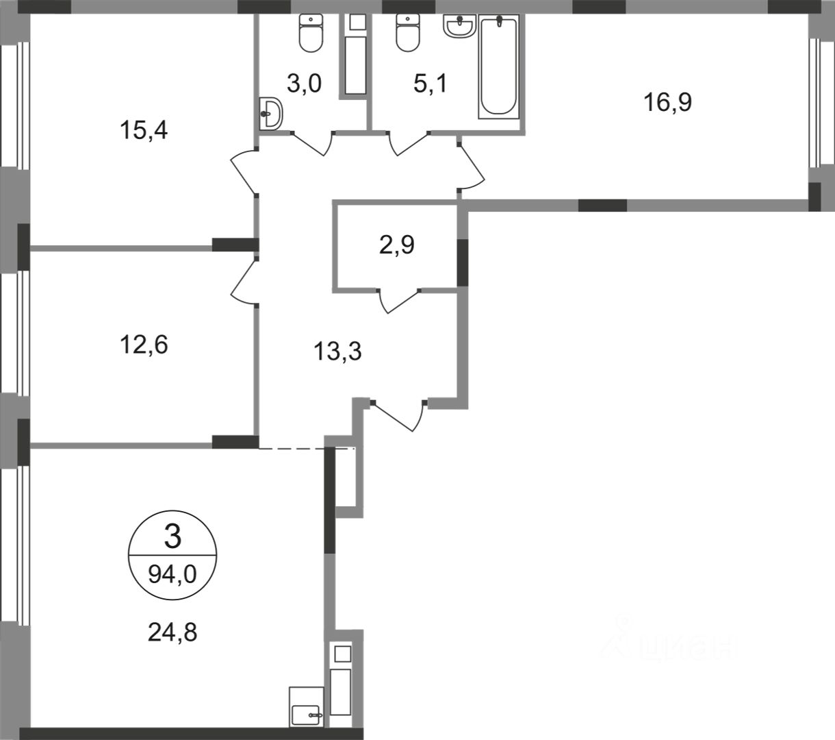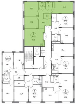 Общая площадь квартиры - 94 кв. м, этаж 7 из 17.