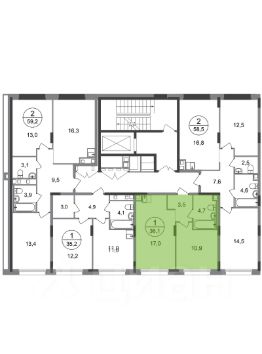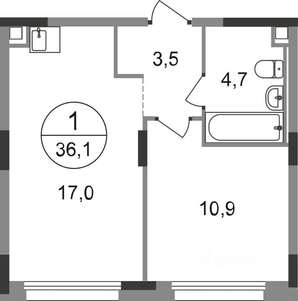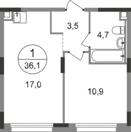 Общая площадь квартиры - 36,1 кв. м, этаж 2 из 17.