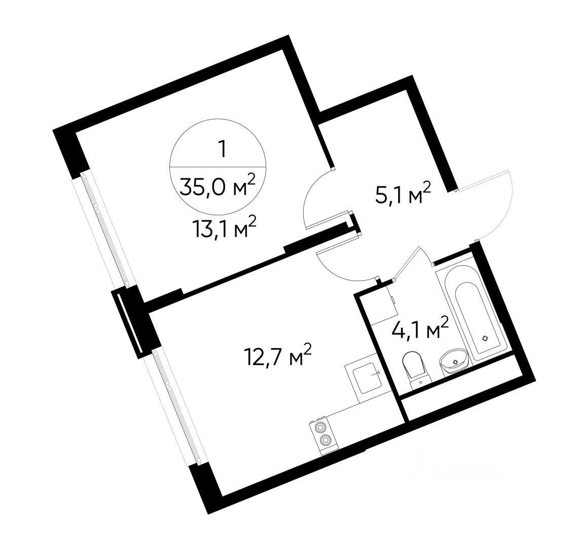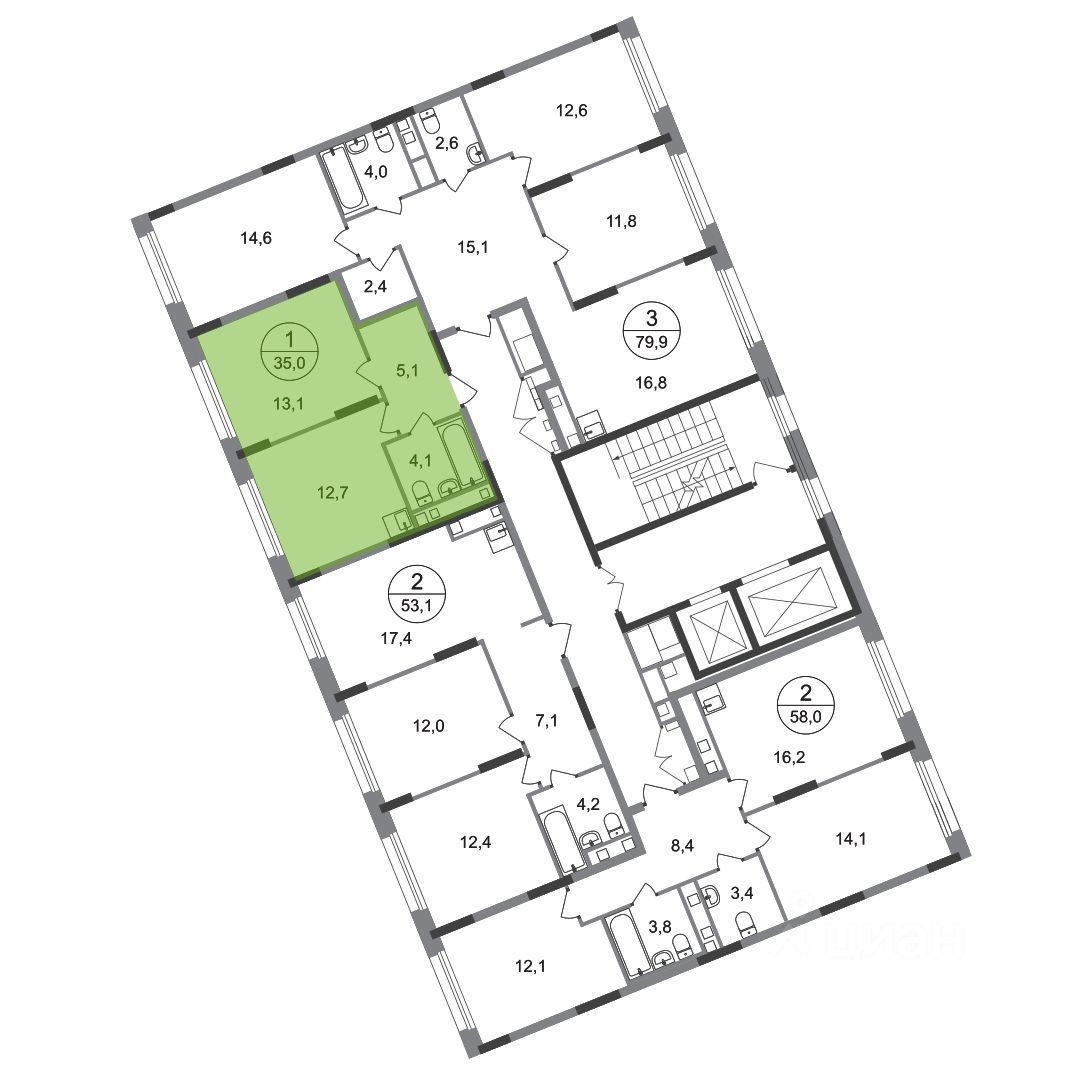 Общая площадь квартиры - 35 кв. м, этаж 3 из 17.