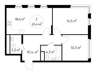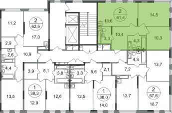 Общая площадь квартиры - 61,4 кв. м, этаж 10 из 17.