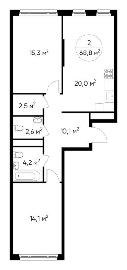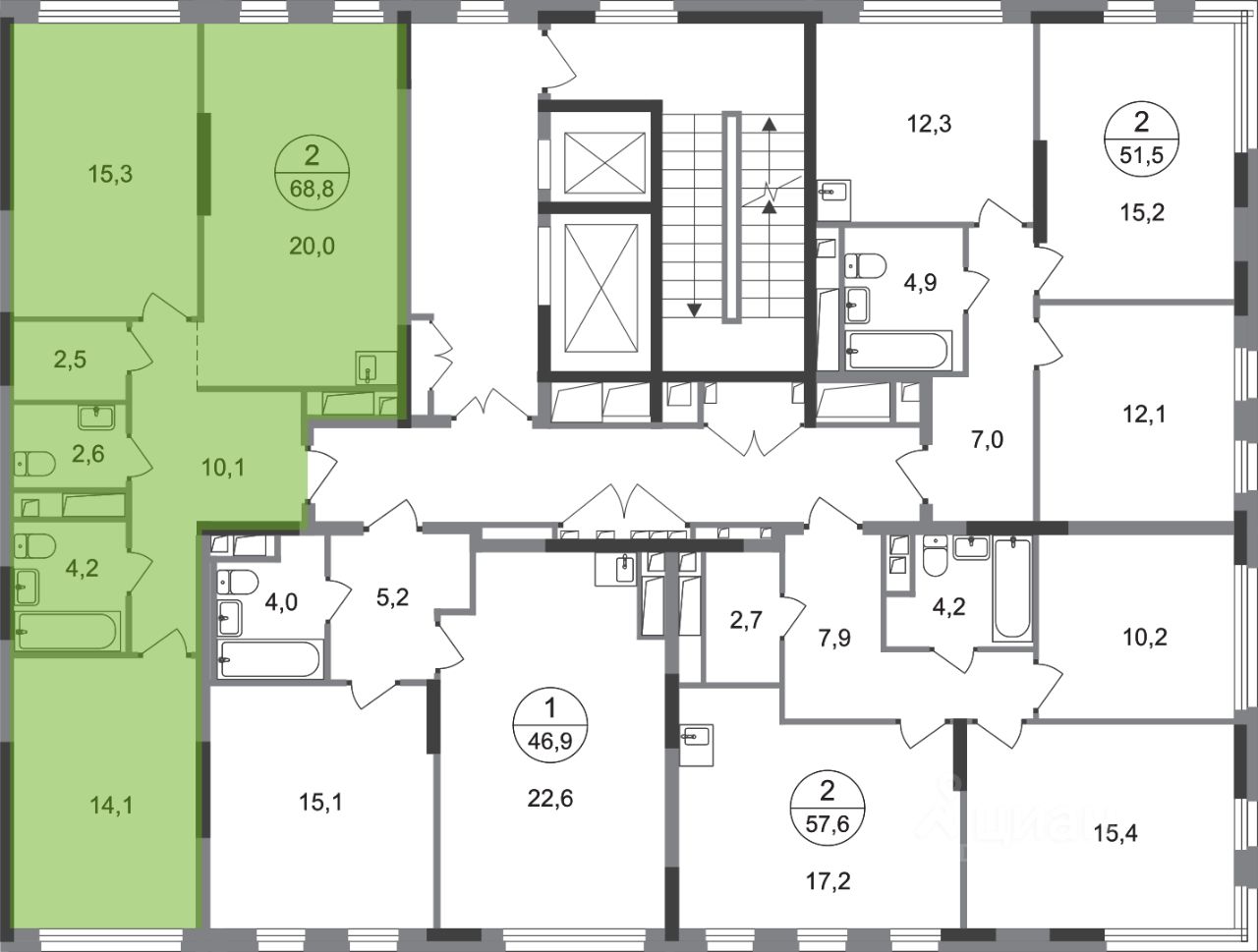 Общая площадь квартиры - 68,8 кв. м, этаж 7 из 17.