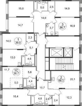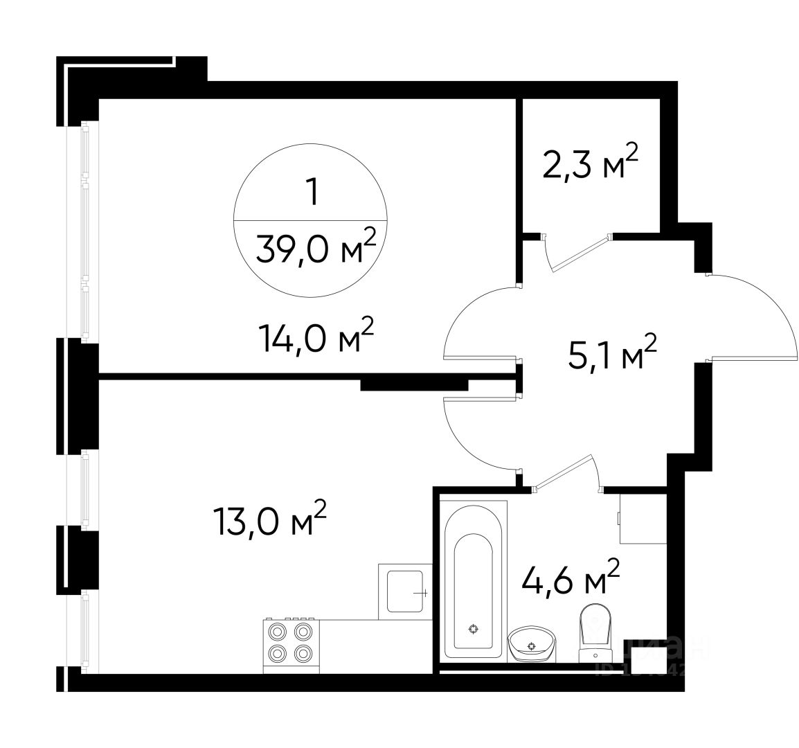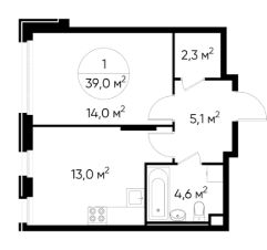 Общая площадь квартиры - 39 кв. м, этаж 2 из 17.