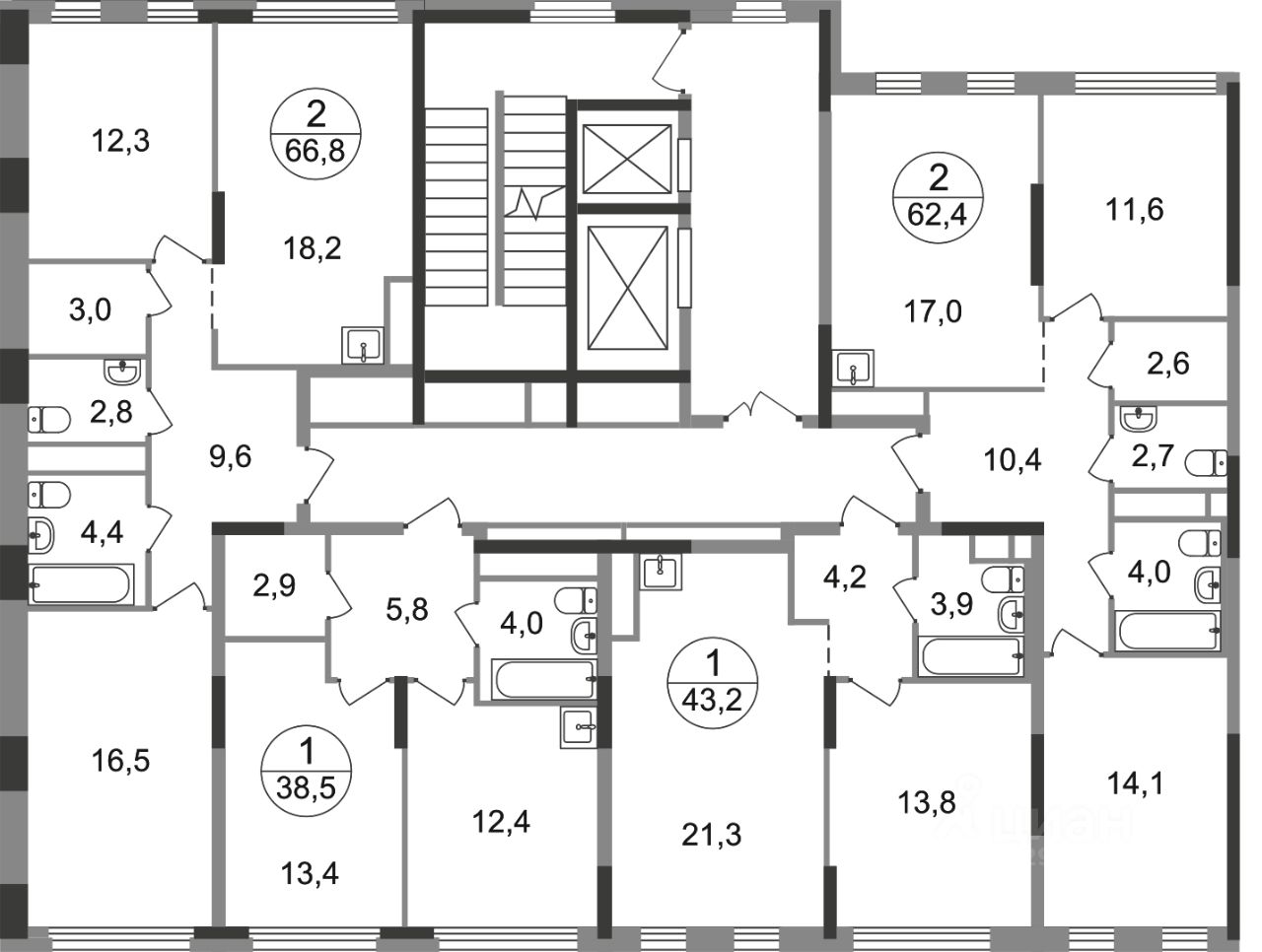 - в каждой секции 2 лифта: 1 пассажирский, 1 грузовой
