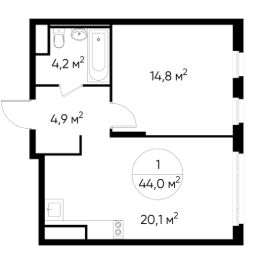 Общая площадь квартиры - 44 кв. м, этаж 8 из 17.