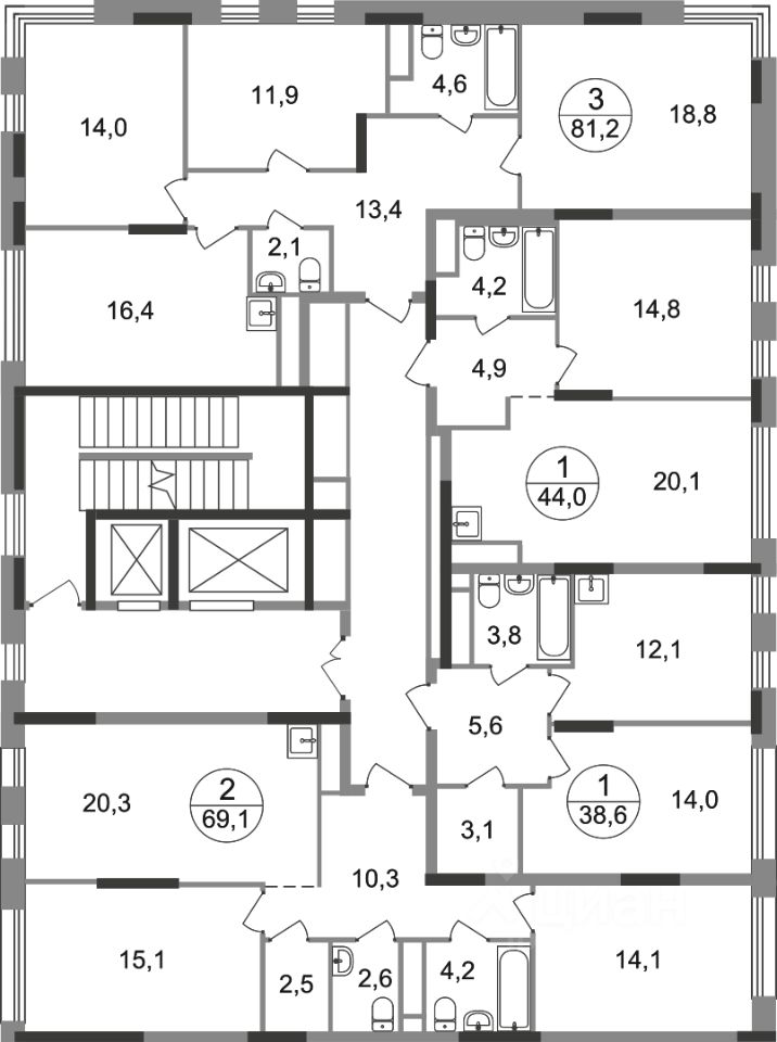 - в каждой секции 2 лифта: 1 пассажирский, 1 грузовой