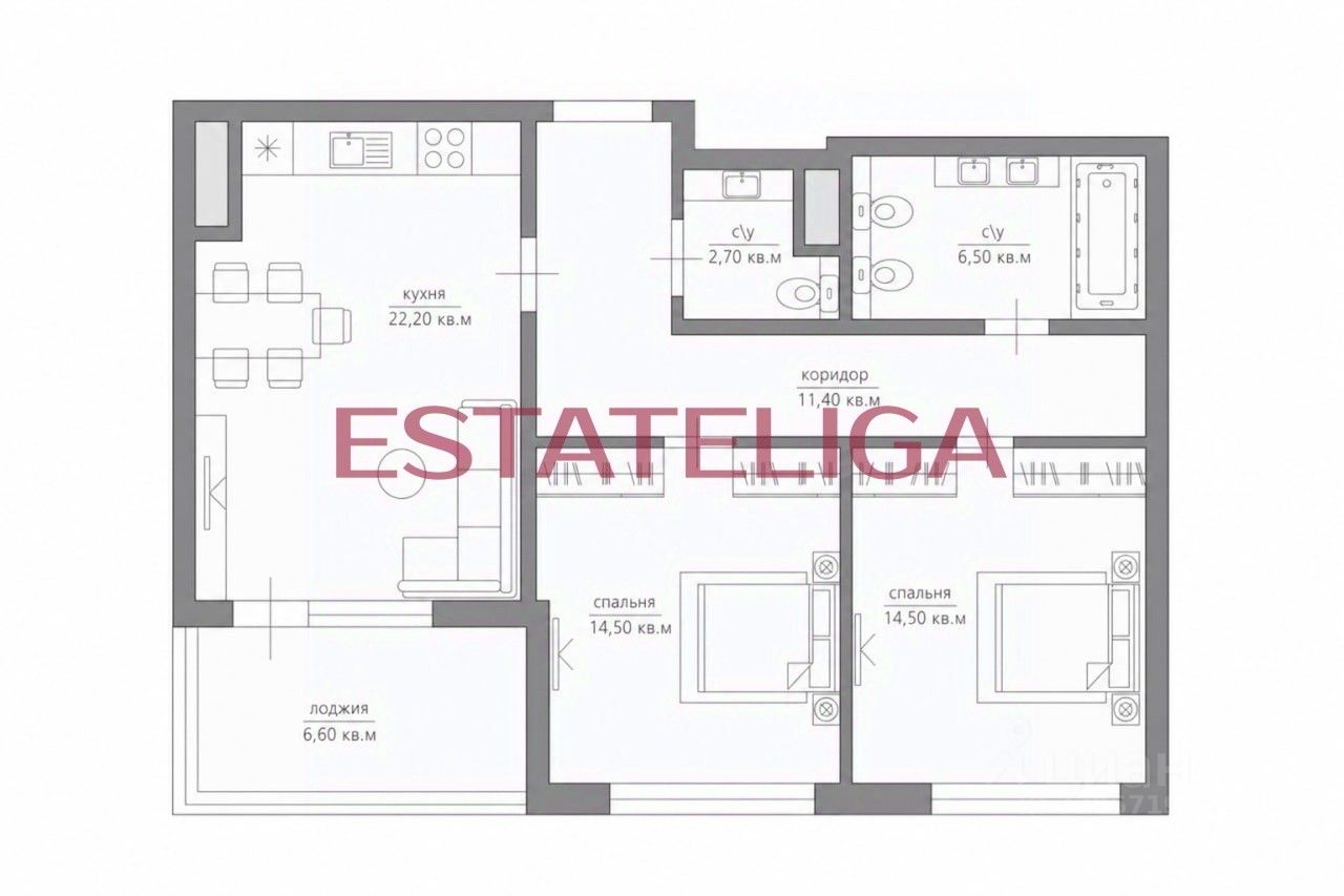 Id 63196. Продается 3-ех комнатная квартира 75.2м2 в ЖК "ОСТРОВ"!