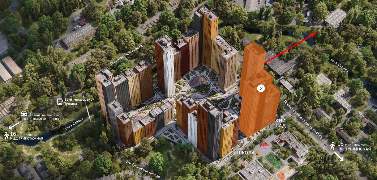 Прямые выезды на Волоколамское шоссе. Метро и МЦД Тушинская в 15 минутах пешком.