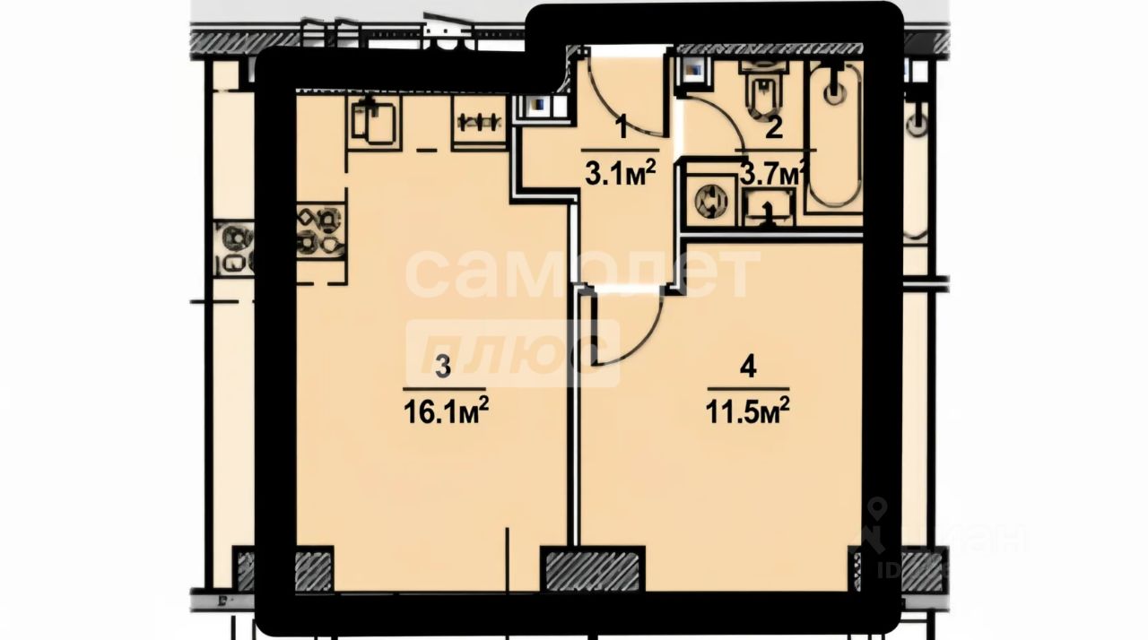- Кухня-гостиная (16,1 м²)