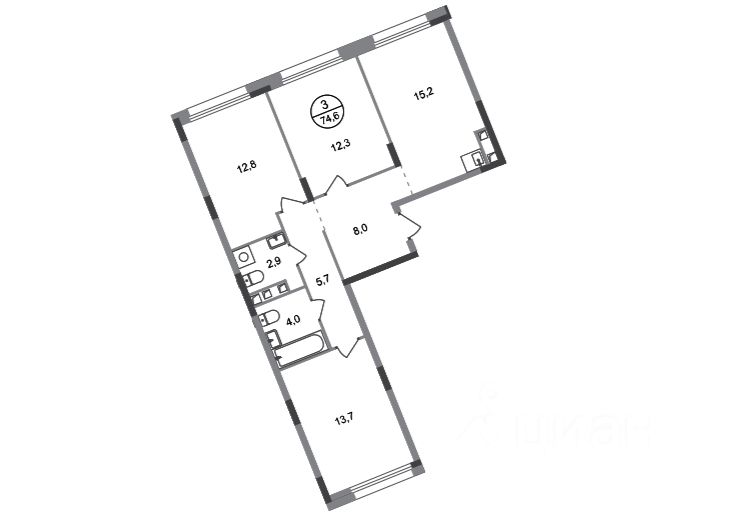 Отличная планировка с правильной геометрией комнат