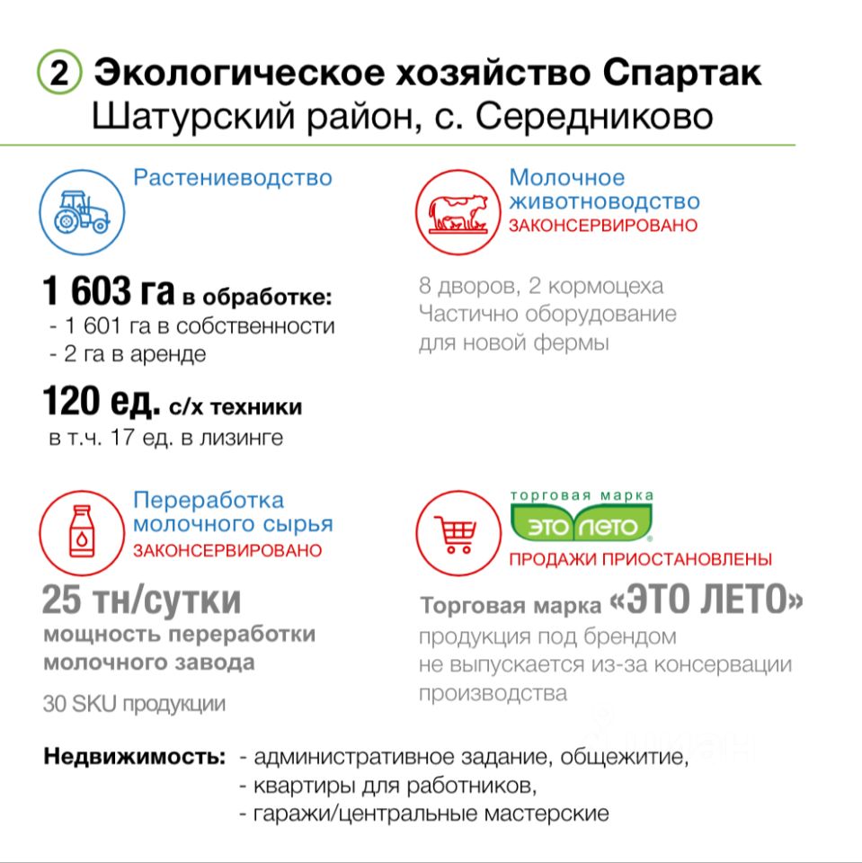 1. ООО Спартак в Шатурском районе Московской области (350 млн.рублей, торг уместен, будут вопросы звоните или пишите);