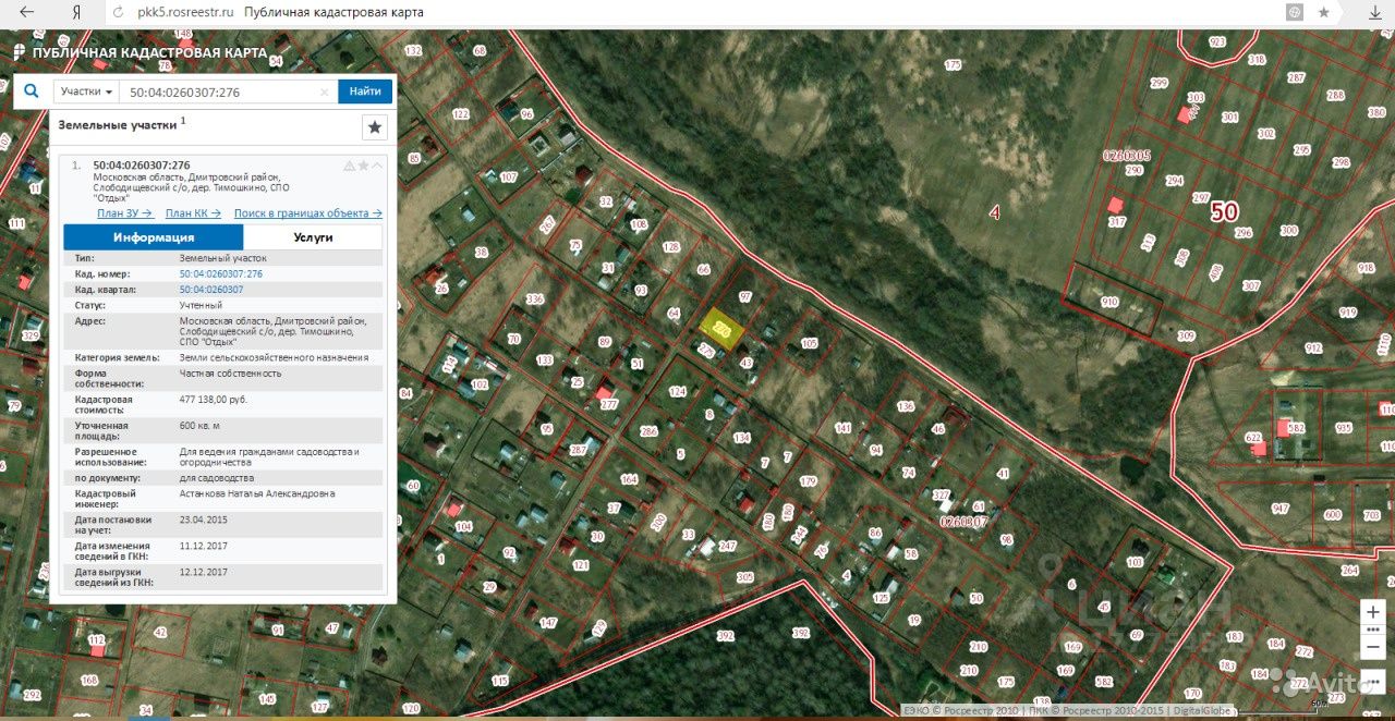 Кадастровый (условный) номер: 50:04:0260307:276.