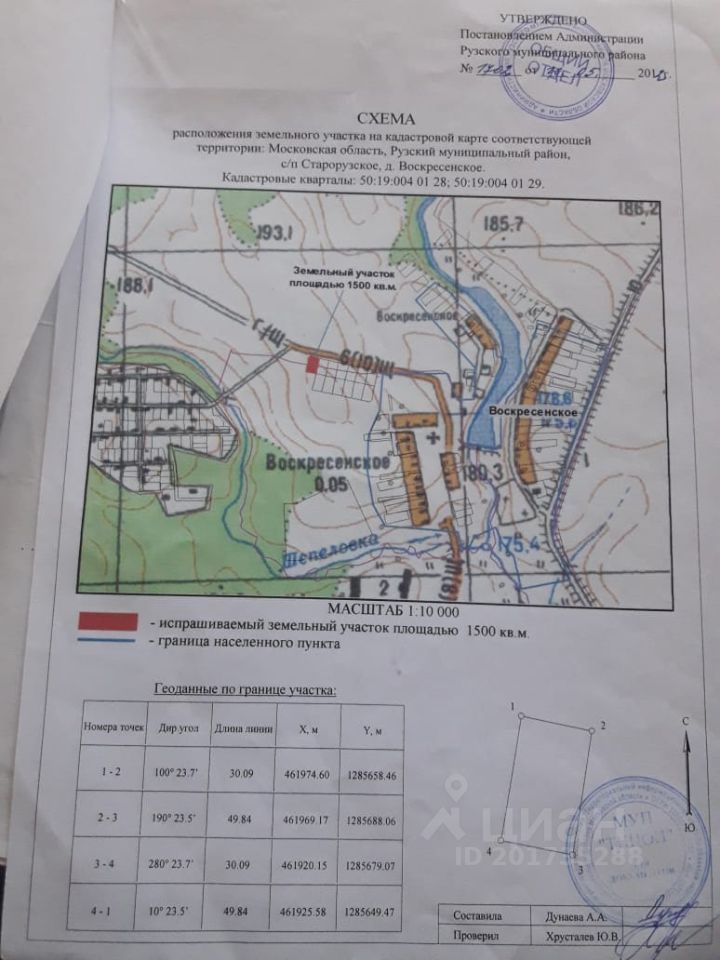 10 км от г. Руза. Недалеко автобусная остановка. Пруд и леса. Очень красивое место