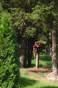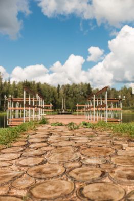 прогулочные зоны, русская баня, турецкий хаммам, финская парная, детский развлекательный центр, контактный зоопарк в окружении воды, ресторан и два банкетных зала (на 60 и 120 гостей), крупнейший в России Парк динозавров.