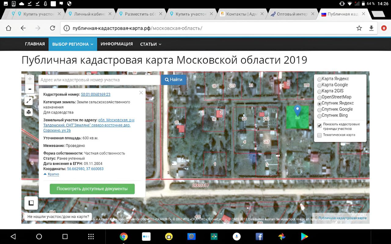 Участок 6 соток,сделано МЕЖЕВАНИЕ(участок внесен в публичную кадастровую карту) в СОБСТВЕННОСТИ с 2008 года на территории СНТ Земляне Талдомского района Московской области, по Дмитровскому шоссе.От станции Власово ходит рейсовый автобус,время в пути около 10 минут, участок находится в 3 минутах от остановки, что не мало важно для удобного перемещения.Весь путь от Москвы до участка 90 км. по отличной комфортной дороге в любое время года,так как дорога чистится от снега. На участке имеется центральное водоснабжение с питьевой водой, а так же есть электричество по периметру.Улици освещают.В пешей доступности есть магазины и стройматериалы, так же магазин продуктов в 3 минутах ходьбы. Развитая инфраструктура. Участок расположен в экономическом чистом районе в лесной зоне густого смешанного леса насыщенного огромным количеством ягод, что в свою очередь позволяет полноценно ощутить всю прелесть природы и чистого воздуха.Неподалёку есть озеро.При желании можно добраться через лес по дороге до реки Дубна, где можно порыбачить и отдохнуть. На территории СНТ многие проживают круглогодично!!!.СНТ старое и всё уже обустроено,каких то лишних взносов не надо.Люди проживающие в этом районе очень отзывчивые и порядочные,охрана,вывоз мусора.У соседей установлен большой бассейн,можно жить комфортно).Рядом город Талдом.Документы оригинальные и в полном порядке,налоги оплачены.Поэтому сделка пройдет быстро и безпроволочек.На все вопросы отвечу по телефону или в WhatsApp,так как могу находится не в России.Торг уместен.Фото: