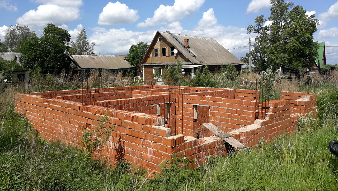 Первая линия у дороги. На участке проведено электричество, кирпичный фундамент (11х8м, глубина 2м, высота потолка цоколя не меньше 2,5м, предполагалось строительство кирпичного дома в 2 этажа с чердаком), рядом 2 дренажных колодца, отдельный септик, крепкая ограда из профнастила и бетона, 2 теплицы, кирпичный сарай, колодец. Также есть остатки сгоревшего деревянного дома. Возможность регистрации участка для ПМЖ.