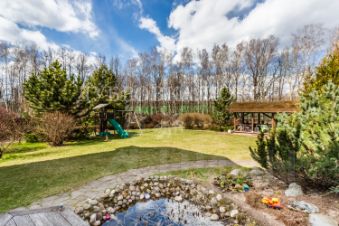 Москва. Охраняемый ЖК Дубровка. Калужское шоссе, 5км от МКАД. В классическом стиле отделки, с зимним теплым садом, предлагается жилой меблированный 3х ур. таунхаус 440кв.м. и своим земельным участком площадью 6,5 соток в собственности и около 5,5соток самозахват. Дизайн итальянская классика. Использованы качественные и натуральные материалы отделки: керамогранит, натуральные породы дерева, мрамор, дорогие обои и краска. В таунхаусе выполнены полы с водяным подогревом, установлены: кондиционеры. Участок с беседкой для барбекю, навесом на 3 а/м, спланирован: ландшафт, сосны, плодовые кустарники и деревья, газон. Выход с участка на зону парка и пруда, с освещением и прогулочной зоной.