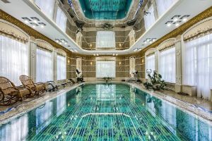 1 этаж: бассейн, бильярдная, гостиная - 2шт., кабинет, кухня, санузел - 2шт., СПА-комплекс, столовая, холл