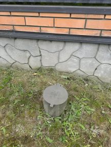 Ровный квадратный участок. На участке взрослые березы и ель. Участок огорожен забором (кирпичные столбы, профлист 2м на кирпичном цоколе). Есть 2 ворот.