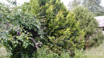 5. На участке расположены плодоносящие яблони, груши, а также декоративные растения: можжевельник, туя, альпийская сосна, виноград.
