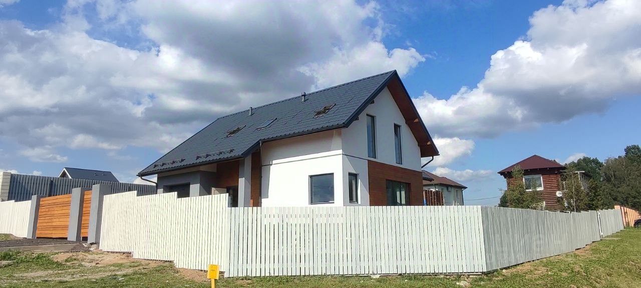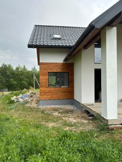 Стоит на бетонных сваях, стены Бонолит 400мм, полы/пепекрытия монолит, кровля МЧ утеплена 250мм. Окна дорогие деревянные. Фасад готов.