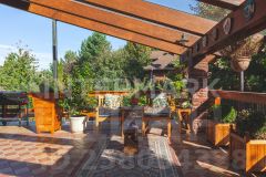 Участок вокруг дома оформлен с учетом современных тенденций ландшафтного дизайна, создавая идеальное пространство для отдыха на свежем воздухе. Для вашего личного транспорта предусмотрен гараж, расположенный в контуре дома.