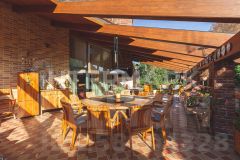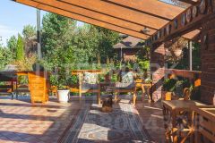 Коттедж построен с учетом актуальных загородных трендов и индивидуальной концепции. Его оригинальный фасад, выполненный из разнообразных текстурных материалов, гармонично вписывается в окружающий ландшафт. Внутренняя отделка дома ориентирована на натуральность и безупречную эстетику, что создает атмосферу уюта и комфорта в каждом помещении. Все комнаты укомплектованы мебельными гарнитурами из массива и профессиональной бытовой техникой.