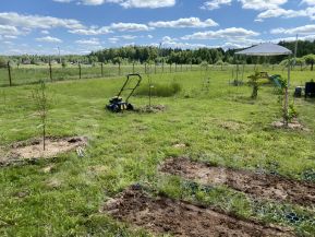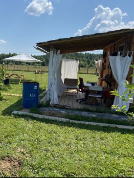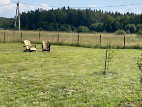 На участке забор, электричество 45кВт, вода из колодца, маленький коттеджик с большой террасой, отдельно туалет, рукомойник. Есть еще техническая бытовка 21м2. Проложена дорога. В селе газ, асфальт и автобусная остановка.