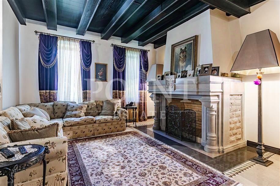 Лот: 30553. Предлагается новый загородный особняк в стиле кантри площадью 1000 кв.м под ключ с мебелью, построенный в приватной части поселка "Тарасово" в тихом месте на берегу реки Десна. Дом оснащен современной инженерией; установлены сплит-системы, приточно-вытяжная вентиляция, теплые водяные полы, сигнализация, видеонаблюдение. На первом уровне (цоколь) находится тренажерный зал, бильярдная, сауна, бассейн, комната отдыха, санузел, спальня, а также помещения бытового и технического назначения. На втором уровне расположена кухня, гостиная, столовая, большой холл, два зимних сада, санузел и изолированный гараж на два автомобиля. На третьем уровне размещена спальня с гардеробной и ванной комнатами, кабинет, спальня, гардеробная, санузел. На четвертом (мансарда) - детская игровая. На участке 25 соток выполнен дорогой ландшафтный дизайн, расположен очаровательный пруд, беседка с зоной барбекю и двухэтажный дом для персонала с парковкой на шесть машино-мест.