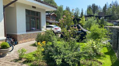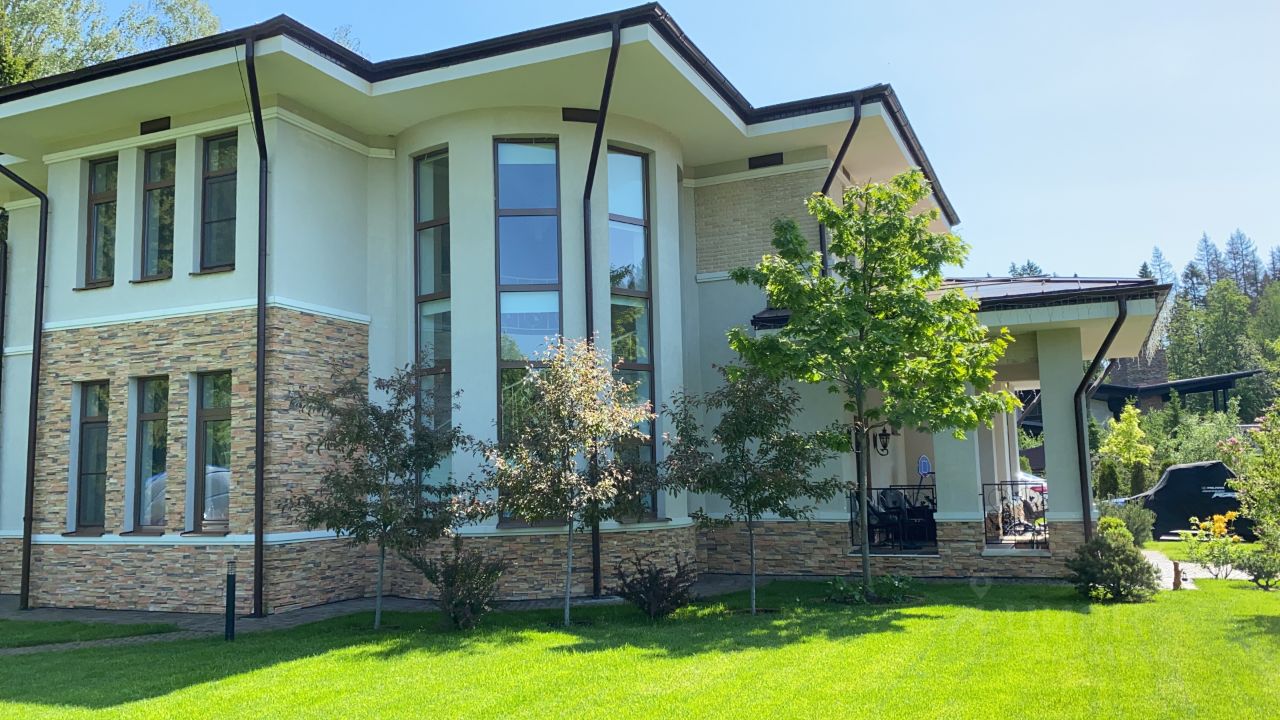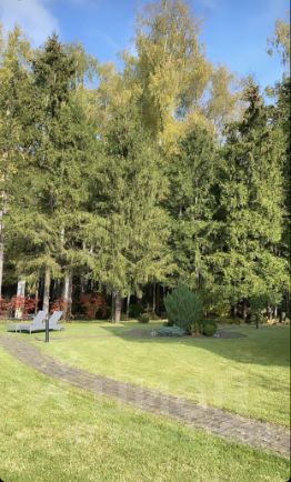 Красивый участок с профессиональным ландшафтным дизайном в стиле английского сада оборудован автоматической 4-зонной капельной и сплинкерной системой полива. На лесном участке посажены по всему периметру туи, также на участке большие сосна, также есть и плодовые деревья. Установленна декоративная подсветка участка и дома.