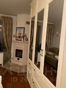 кухня, обеденная зона, зал-гостиная с камином, ванная комната, спальня, гардиробная-кладовка и коридор с большим встроенный зеркальным шкафом.