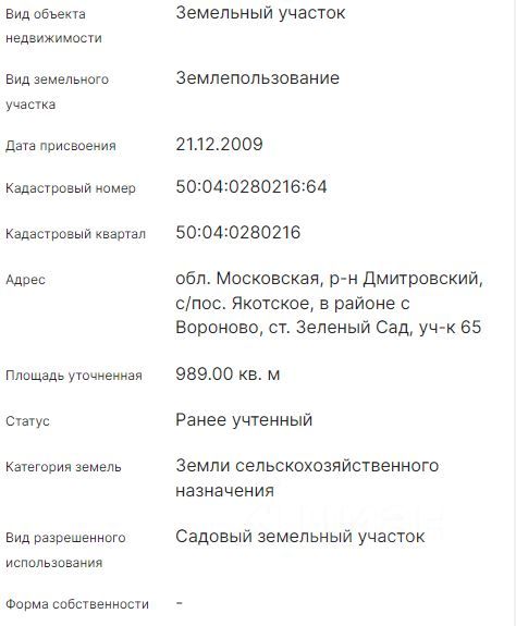 Кадастровый номер участка 50:04:0280216:*** указал продавец