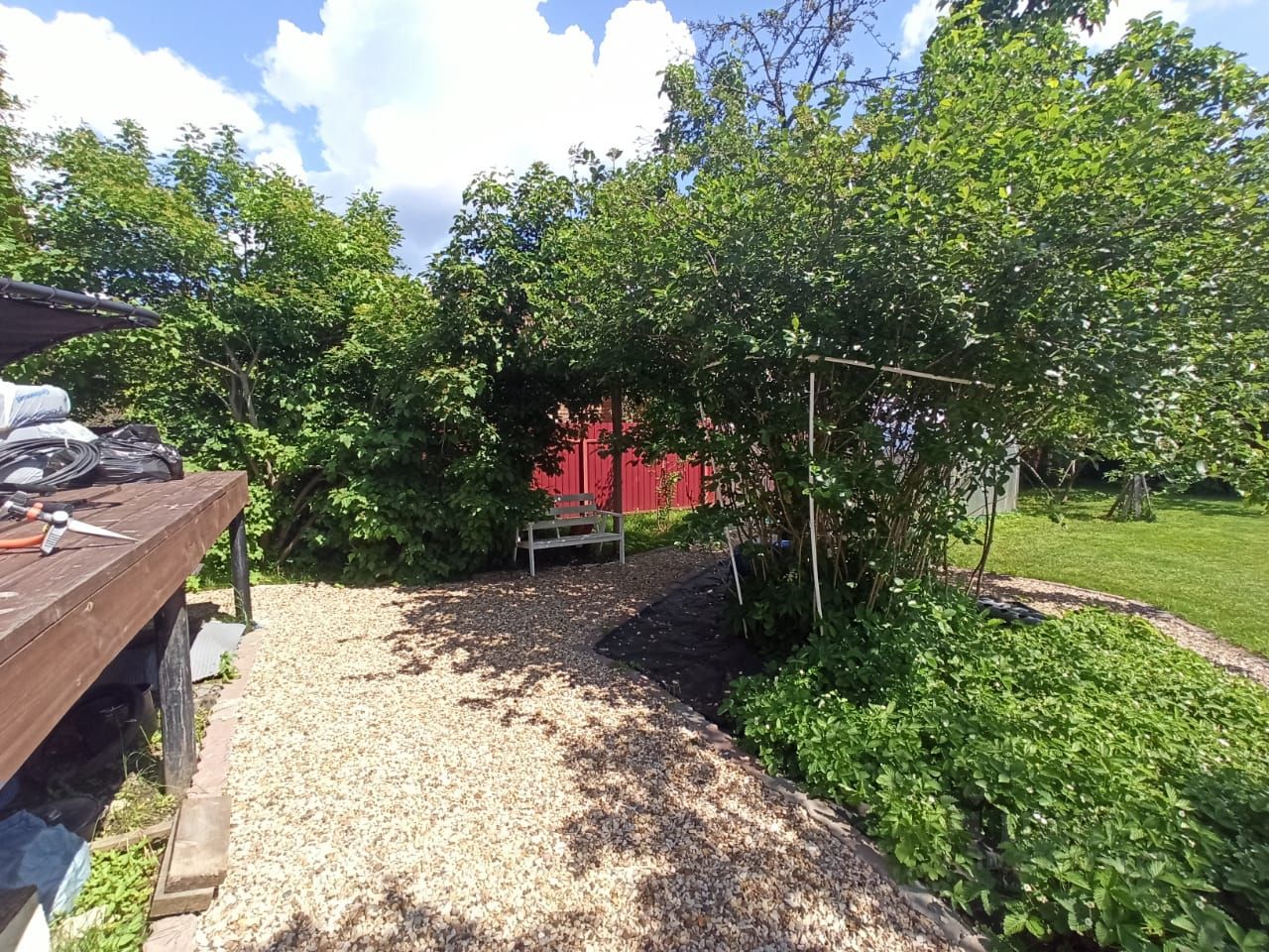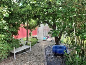 На участке дорожки вымощены речным камнем, есть плодовые деревья, кусты, парник. По участку разведен летний водопровод (под землей) у машиномест выведен кран с круглогодичной теплой водой из дома (автоматически сливается).
