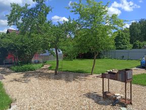 СНТ очень тихое, не большое, чуть больше ста участков, вокруг красивый сосновый лес, вид из окна и веранды - на лес. Место под барбекю, тандыр, мангал.