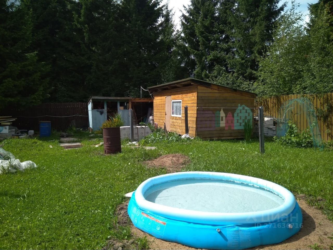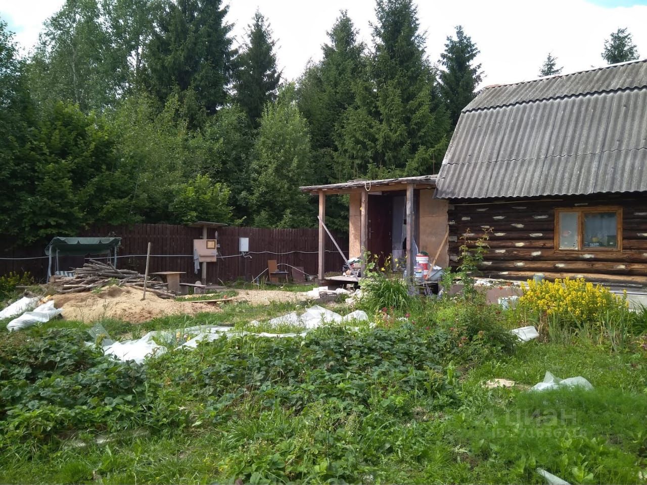 На участке растут: Многолетняя ель, 4-ре яблони, груша, смородина, малина, земляника-клубника.