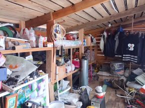 На участке стоит хозблок для инструментов и Дровник.